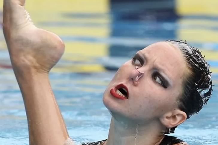 她看起來像是在重新思考,究竟是什麼人生選擇讓她來到這場充滿氯氣的對決。沒有付出,哪來的獎牌,對吧?