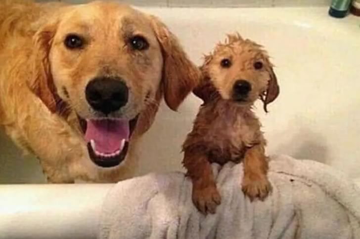 洗澡對狗狗來說是個普遍的挑戰,而這隻小狗現在才剛明白這個道理。牠的第一次洗澡並沒有如預期般順利——牠那瞪大的雙眼和濕漉漉的毛髮完美地說明了這一切。牠看起來更多的是困惑,不明白為什麼自己一開始會被丟進水裡。這是每個狗爸媽都曾經歷過的時刻!