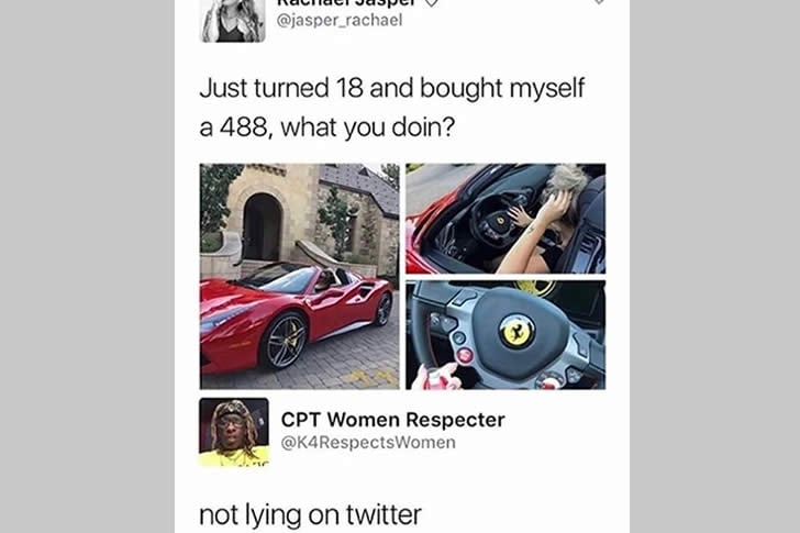 최고 댓글: 누군가 인생 경험이 너무 부족해서 자기 자랑을 하려다가 저지르는 거짓말이 얼마나 터무니없는지 전혀 모르는 경우.