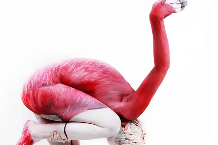 Ein leidenschaftlicher Bodypainting-Künstler hat sich in einen Flamingo verwandelt – eine Hommage an den eleganten rosa Vogel mit der unverwechselbaren Einbein-Haltung. Die farbenfrohe Gestaltung spiegelt nicht nur die Federn, sondern auch die Grazie dieser Vögel wider, die durch Carotinoide in ihrer Nahrung ihren rosafarbenen Glanz erhalten.