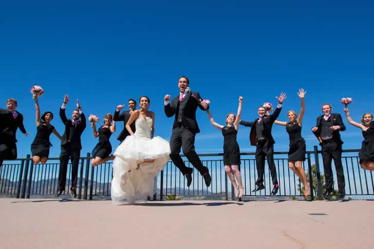 Ahmt eure Lieblings-Teenie-Crew nach (meine ist „High School Musical“) und springt für ein lustiges, energiegeladenes Gruppenfoto in die Luft.