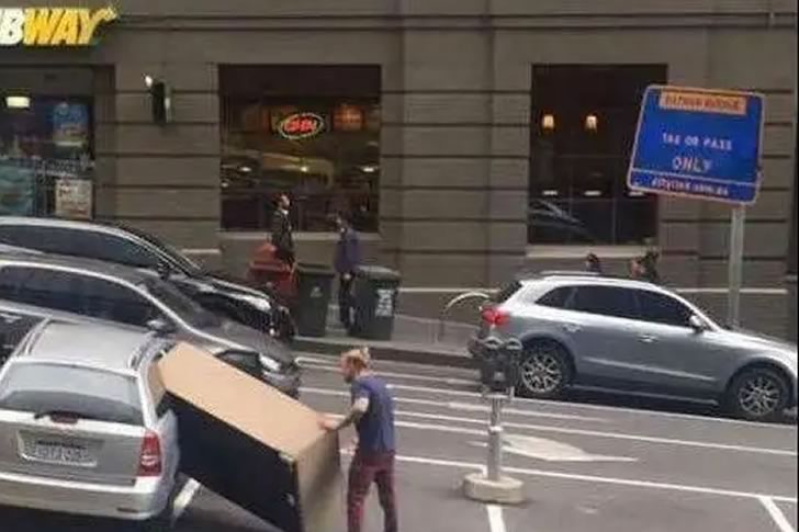 Sometimes optimism just isn’t enough. This guy clearly believed he could fit a massive box—possibly furniture or an appliance—into the back of a compact car. The box is comically oversized, hanging well out of the trunk and nearly touching the ground. It’s the kind of move that makes you wonder: did he measure either the car or the box before hauling it into the city?