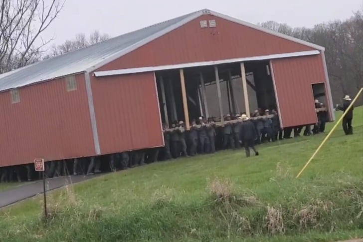 #13 A Whole Load Of Amish Guys Moving A Barn