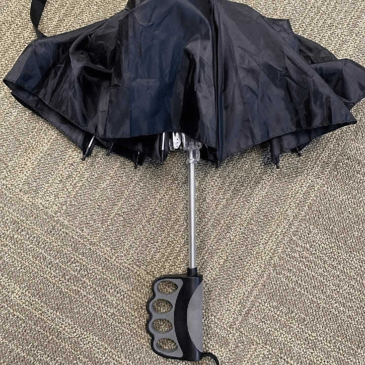 Most umbrellas are standard travel accessories, but some designs are a bit too aggressive for the TSA. A man was stopped because the handle of his umbrella was shaped like brass knuckles.