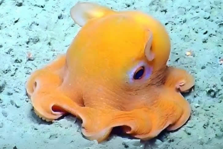 Instead of ink or dramatic color changes like shallow-water cousins, they rely on those flapping fins and umbrella-like arms to glide gracefully. They eat small crustaceans and have soft, gelatinous bodies built for crushing pressure. Their adorable appearance hides an alien lifestyle few adults have ever imagined—proof that the deep ocean still holds creatures cuter and stranger than anything in kids’ cartoons.