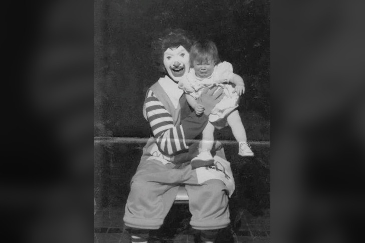 44 Vieilles Photos Glaçantes Qui Sont Assez Dérangeantes #39 Une première version de Ronald McDonald photographiée aux côtés d’un bébé en pleurs. Advertisements Advertisements PREV NEXT PAGE