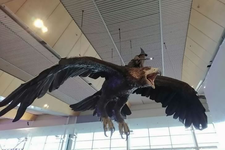 This whimsical display doesn’t just add charm—it transforms the airport experience. While most airports opt for bland murals or sterile lighting, this one greets passengers with full-blown cinematic flair. It’s a brilliant nod to local culture and film history, while also offering the perfect photo-op for Tolkien fans. Whether you’re arriving, departing, or just grabbing a coffee, spotting a giant eagle overhead is bound to make your journey unforgettable… or at least give you something incredible to post on social media.