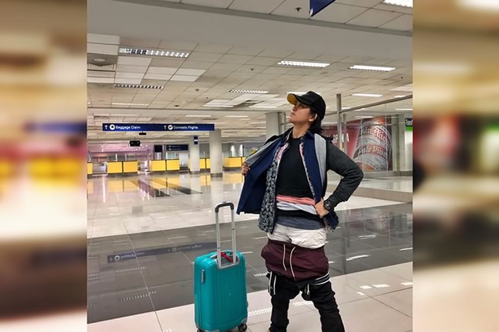 This traveler has clearly mastered the art of beating the baggage fee system—by becoming the luggage! Instead of paying for extra weight, they’ve opted to wear it all: layer upon layer of shirts, jackets, and an impressive double dose of pants. With a confident stance and a face full of pride, they look like a superhero who’s just conquered the ultimate airport villain—overpriced checked bags.