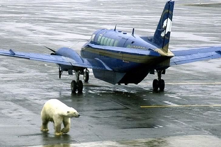 This unusual scene captures a moment that’s as hilarious as it is surreal—a polar bear casually strolling across the tarmac near a small aircraft. The contrast between the wild animal and the controlled environment of an airport creates a comedic and almost cinematic visual. It’s not every day you see a flight delayed not by weather or maintenance, but by an arctic predator deciding to take a detour through the runway. For the pilots and passengers, it’s a delay they’ll probably never forget.