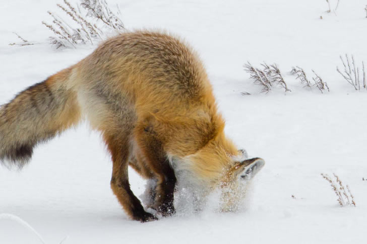 The red fox has a fascinating winter hunting technique. In deep snow, it listens for the faint rustling of mice below the surface. Once it locks onto the sound, it leaps high into the air and dives snout-first into the snow with near-pinpoint accuracy.