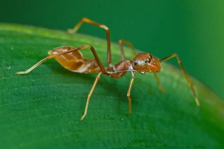 Some spiders have evolved to look exactly like ants—down to their body shape, movements, and antenna-like leg waving. Why? Because ants are aggressive and taste terrible to most predators. By mimicking ants, these spiders avoid being eaten and sneak through colonies undetected.
