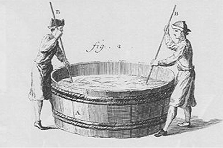 In ancient Rome and medieval Europe, fullers played a crucial role in fabric production by cleaning and thickening wool with a rather unpleasant ingredient—human urine. The ammonia in urine was an effective cleaning agent, so fullers would gather it from public urinals to soak and “wash” the textiles. Workers then stomped on the cloth in large vats, a process that was as physically taxing as it was malodorous.