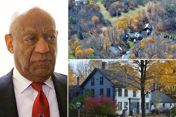 The property is shown in an exclusive aerial photo containing at least five buildings, including the main building. The swimming pool and tennis court are part of the 21-acre property purchased by Cosby in 1971. It also shows magnificent pines and an aged forested backyard. The style follows a Tudor Revival style. The Cosby estate is pretty secure, and the grounds are walled in with a gated driveway and entrance. He also has other real estate investments in the suburbs of Los Angeles and Philadelphia.