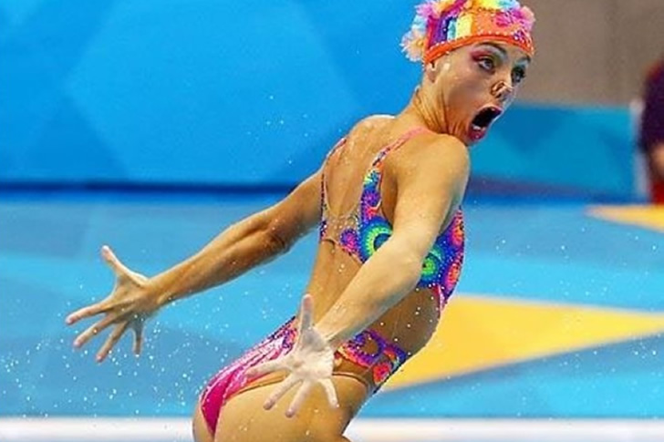 Candid shots possess a unique power – they capture emotions normally hidden from view. This synchronized swimmer’s face reveals an intense mix of concentration and sudden seriousness during her routine – an expression she probably never intended to share publicly.