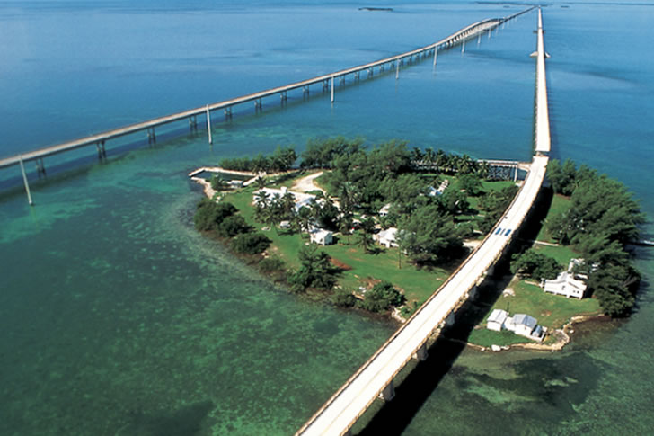 アメリカ・フロリダ州にあるセブンマイルブリッジは、全長10.887kmにもなる特大の橋です。日本一長い橋と言われる東京湾アクアブリッジが4,425mだと思えば、その異常な長さが分かりますね。セブンマイルブリッジはただ長いだけでなく、周りの光景が美しいことでも知られます。サイドにはサンゴ礁が広がり、まるで楽園に続いているかのようです。実際数多くのCM撮影や映画撮影にも使われてきました。