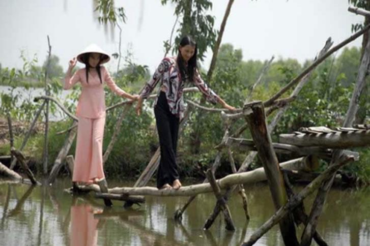 地元の人々にはすでに馴染みの橋で、彼らは慣れた様子で素早く渡ります。モンキーブリッジには竹だけでなく、様々な素材や形状があります。例えば、ヤシの木で作られた粗末な橋や、手すりがまったくないものも存在します。これらの橋に共通しているのは、橋の下に船が通るためのスペースが確保されていることです。