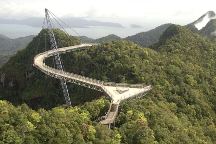 マレーシアのリゾート地、ランカウイ島にあるスカイブリッジは、2005年に完成した比較的新しい構造物です。この橋は空中に浮かぶように設計されており、全長は125メートルで、山頂に設置されています。海抜660メートルの位置にあるこの橋へ行くためには、まずケーブルカーで山を登る必要があります。ケーブルカーは6人乗りで、途中からはほぼ垂直に登るような経路を進みます。