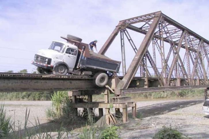 橋全体が脆くなっており、大型車が通行するたびに更にダメージを受けています。また、狭い道幅で車がすれ違うことは不可能で、木の板は釘で固定されていないため、安全に渡ることは困難です。