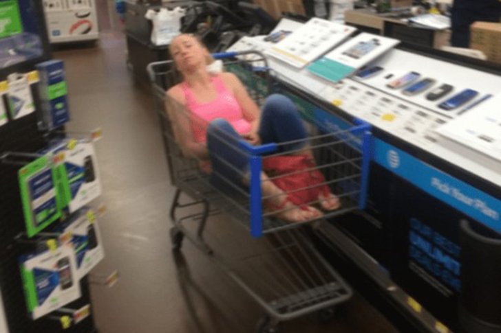 Für manche Menschen ist Walmart ein Ort, der alles bietet, auch eine Art von Selbstpflege. Warum sollte man den ganzen Weg nach Hause gehen, bevor man eine kleine Pause macht? Man kann die ganze Familie mitnehmen. Man kann sogar die Haustierente mitbringen. Es gibt genug Schlafmöglichkeiten in den Einkaufswagen für alle.