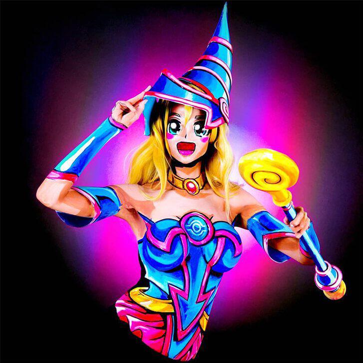 Diese Darstellung des Dark Magician Girl wurde von Kay Pike erschaffen. In dieser Inszenierung schlüpft sie in die Rolle der berühmten Figur aus dem Anime “Yu-Gi-Oh!”, die über Zauberkünste verfügt und telepathisch mit anderen kommunizieren kann.