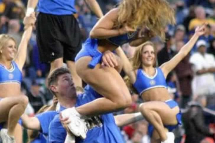 Obwohl das Bild amüsant ist, zeigt es, wie gefährlich Cheerleading sein kann. Verletzungen wie Verstauchungen oder sogar Knochenbrüche sind nicht ungewöhnlich. Die Regel hier: Wer hoch hinaus will, muss für eine solide Basis sorgen!