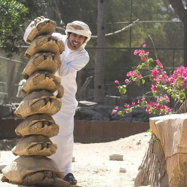 Exotische Tiere als Statussymbol? In Dubai leider nichts Ungewöhnliches. Während manche Großkatzen in der Einfahrt posieren, scheint dieser Herr eine Vorliebe für Schildkröten zu haben – gleich mehrere hat er übereinandergestapelt. Ein kurioser Anblick, aber vermutlich weniger im Sinne der Tiere.