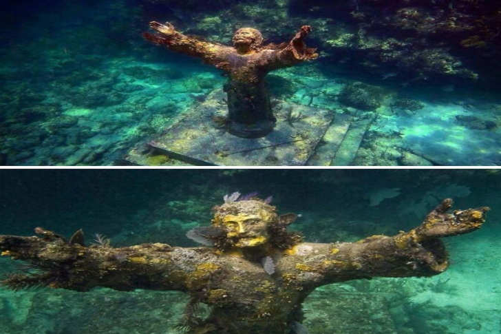 #33 La estatua del ‘Cristo del Abismo’ es una escultura de bronce de Jesús de 2,7 metros de altura, sumergida en Key Largo, Florida