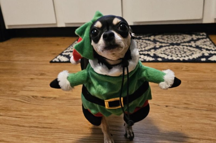 Una vez abrí la puerta para ir a buscar mi correo y un chihuahua con un disfraz de elfo entró corriendo en mi casa. Me quedé allí, con la boca abierta, y volvió a salir corriendo.