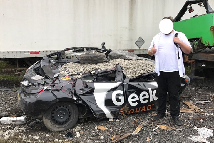 Iba en una camioneta y me estrellé lateralmente contra un poste de luz a unos 96 km/h (hielo negro). El impacto fue tan fuerte que el cinturón de seguridad se rompió y salí despedido por la ventanilla del conductor, aterrizando en un campo.