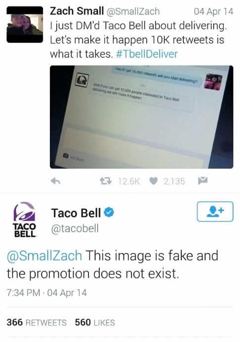 Crear promociones falsas para marcas masivas es un juego peligroso porque esas empresas tienen equipos dedicados en redes sociales que vigilan la desinformación. Taco Bell, una cadena de comida rápida favorita de los fans, es particularmente protectora de su imagen de marca en línea.