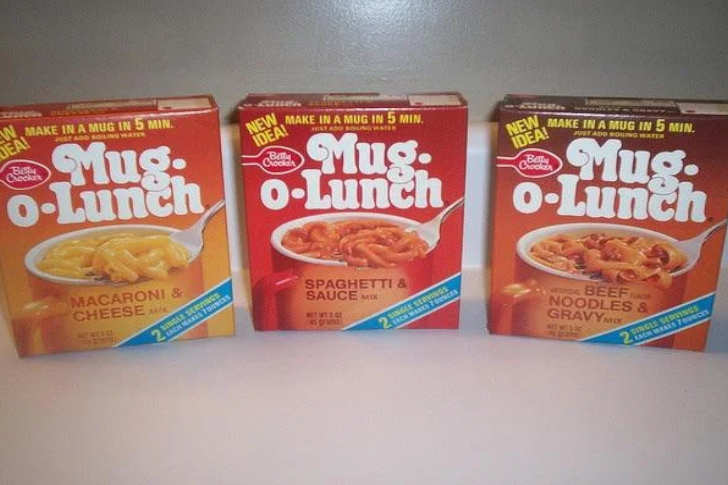 Mug-O-Lunch era este brillante kit de comida instantánea: ¡solo agrega agua caliente al paquete en forma de taza para obtener pasta cremosa, sopa o platos de arroz que se cocinaban en minutos! En los años 70 y 80, como “niño con llave al cuello” (latchkey kid), llegaba a casa, vertía agua, lo metía al microondas o esperaba, y tenía un almuerzo cálido y reconfortante listo rápidamente. Sabores como pasta con queso o sopa de pollo con fideos sabían a casero, pero eran muy fáciles de preparar, ¡perfectos para días ajetreados o cuando los padres no estaban! La taza era reutilizable y los paquetes eran coloridos y emocionantes de abrir. Se sentía como algo de adultos pero a la vez acogedor, como un abrazo en una taza. Desaparecieron en los años 90 con comidas para microondas más modernas. Nada recrea esa nostalgia cremosa exacta.