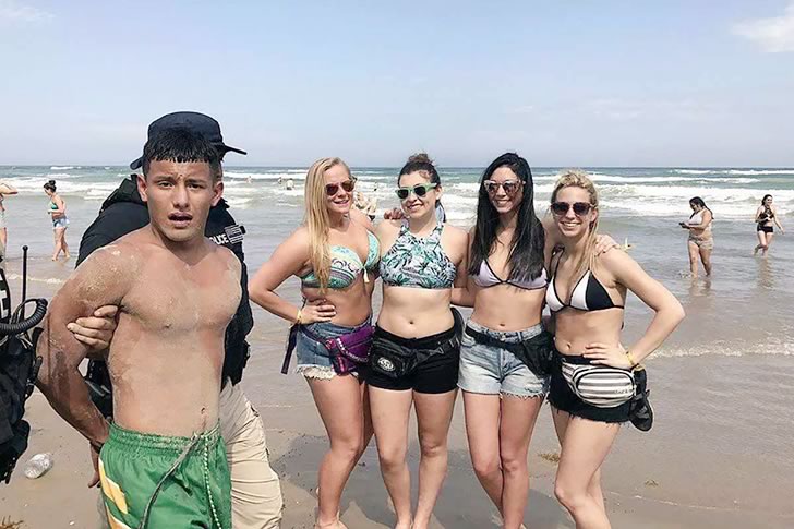 Esta foto de vacaciones quizás no sea el tipo que enmarcarías y exhibirías. Aunque, ¿quién sabe? ¡Tal vez resulte ser un recuerdo inesperadamente preciado! Es muy probable que las mujeres en la imagen lo encuentren mucho más divertido que el hombre. A veces, estar en el lugar correcto en el momento adecuado puede dar lugar a situaciones tan interesantes.