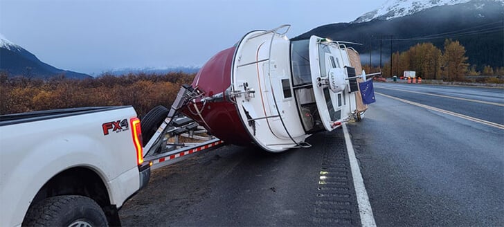 La imagen es un rompecabezas para los demás conductores, quienes no pueden evitar mirar dos veces. ¿Es un nuevo deporte extremo? ¿Un percance de transporte? ¡O quizás el barco solo está mostrando su mejor perfil!