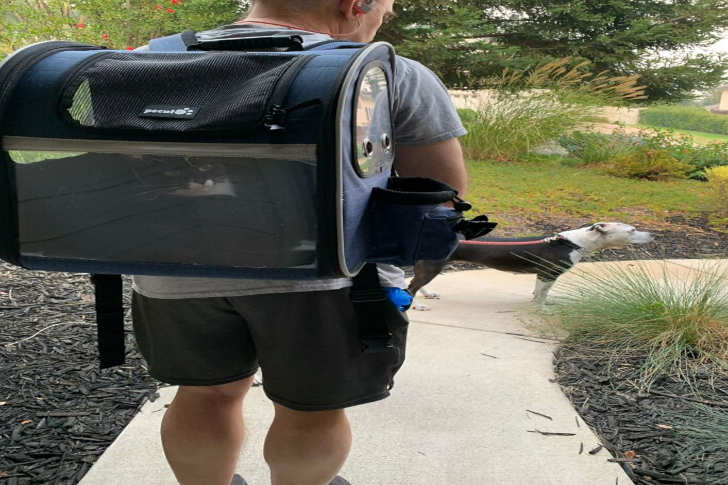 #24 My Dad Taking Our Cat (That He Said We Wouldn’t Be Keeping 10 Months Ago) On One Of Two Daily Walks With The Dogs