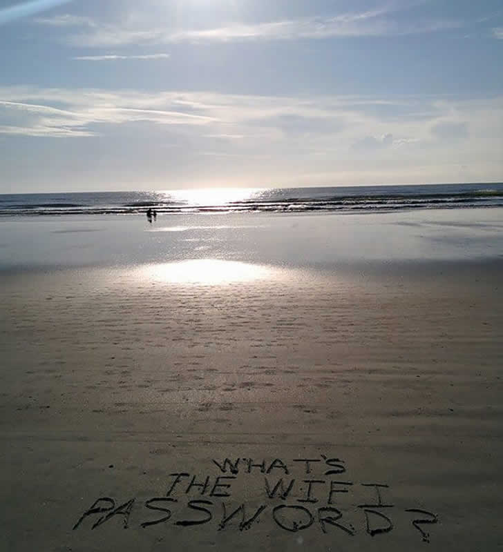 Oubliez les coquillages ou les châteaux de sable : ce vacancier a gravé le cri du cœur ultime dans le sable : “On veut le mot de passe Wi-Fi.”