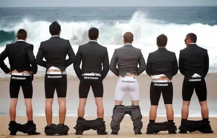 This picture is all about the groomsmen showing off their… unique sense of humor. When the photographer asked them to drop their pants and reveal custom boxers, things definitely got awkward for any onlookers. The groom probably had a blast planning this, though we wonder how his bride felt.