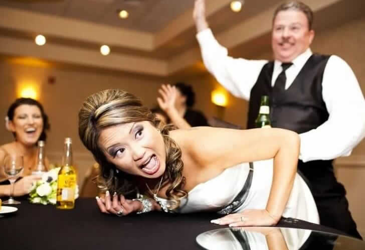 At first glance, this photo feels confusing—and then you realize, no, it’s exactly what it looks like. The bride looks stunned and the groom… well, he’s definitely going for some kind of unusual tradition, hopefully just once.