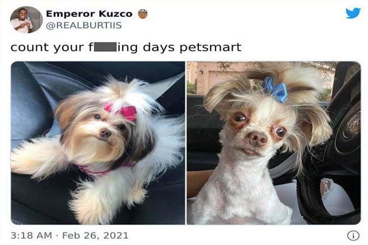自分という人間を本当に変えてしまうような髪型をしたことがあるだろうか?何かトラウマになるような、文字通り自分の本質を変えてしまうような。この犬もそうだ。最初の写真の彼女の落ち着き、穏やかさ、エレガントさを見てほしい。それからほんの数時間後の彼女のパニック顔を見てほしい。その間に彼女は何を見たのだろう?