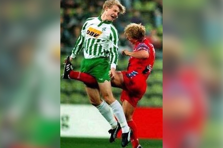 While we’re wincing in sympathy, there’s no denying this perfectly-timed shot belongs in the Hall of Fame for Awkward Sports Moments. That airborne hover? Pure involuntary levitation. Red card or comedy gold? You decide!