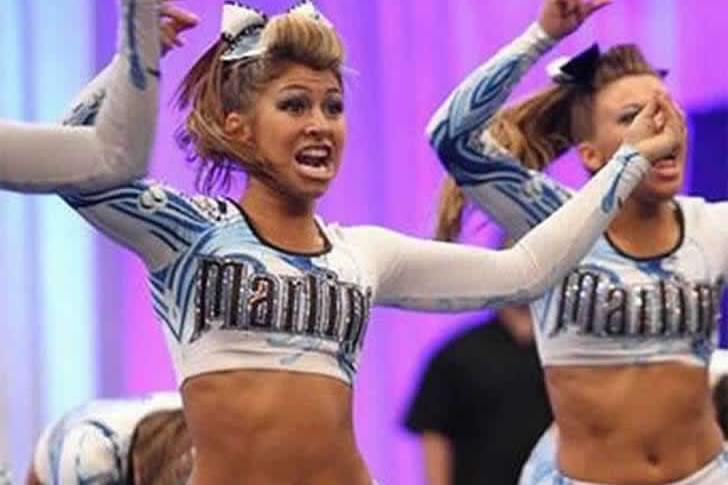 Un’espressione facciale direttamente da un film muto: puro shock, sopracciglia alzate, una perfetta bocca a “O”. Questa cheerleader sa come proiettare emozione, anche fino alle ultime file.