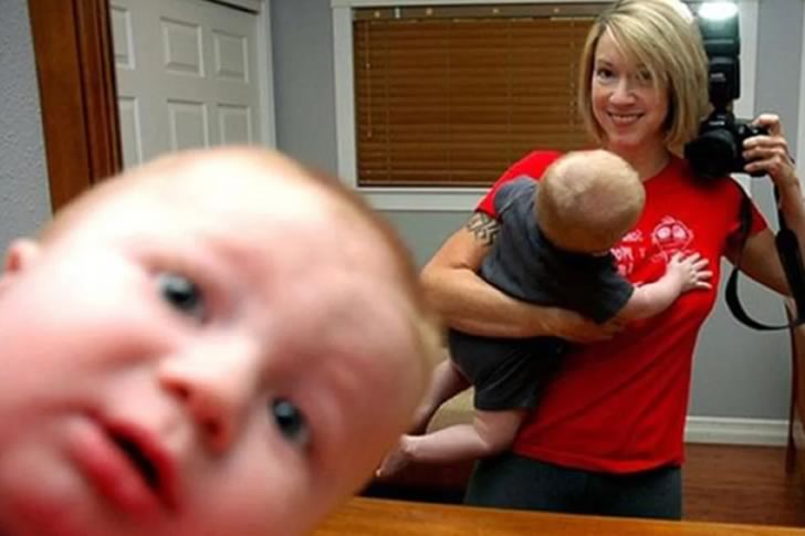 This image highlights a different kind of extreme—not one of danger, but of timing and surprise. It perfectly captures the unpredictable nature of parenting, where moments of calm can be upended by a single, curious glance. The contrast between the poised mother and the baby bursting into the foreground creates a visual punchline that resonates with anyone who’s tried to take a “simple” photo with children. Sometimes, the most memorable shots aren’t the ones we plan—but the ones that crash into frame.