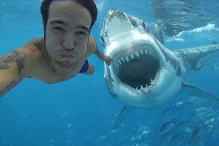 The courage to pose so near a shark underwater highlights an extraordinary level of adventure. His calm expression contrasts with the shark’s menacing presence, creating a thrilling visual that pushes the boundaries of selfie-taking. This image stands out as a powerful example of embracing extreme conditions to capture an unforgettable underwater moment.