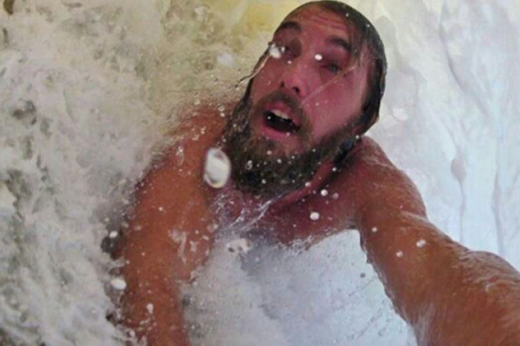 The boldness of capturing this selfie mid-wave highlights an adventurous spirit and fearless approach. His drenched appearance and the turbulent water emphasize the intensity, turning a simple swim into a heart-pounding experience. This image stands out as a perfect example of pushing limits to seize an unforgettable, extreme moment in the ocean.