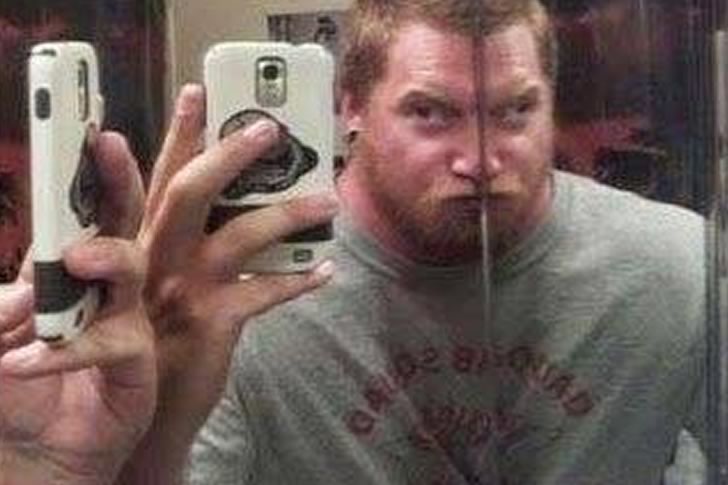 The creativity of this selfie showcases a playful and bold approach to self-portraiture. The mirrored effect and multiple devices turn a simple bathroom shot into a mind-bending experience. This image stands out as an example of pushing boundaries with humor and ingenuity for an unforgettable moment.