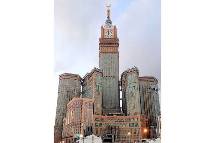 Es liegt direkt neben der Großen Moschee, verfügt über die größten Zifferblätter der Welt und dient als wichtiges Hotel für Pilger.