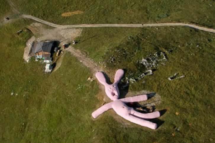 ピンクのウサギが怖い?もっと怖いのは、それが巨大で、さらに腐敗して灰色に変わっているウサギです。この巨大なウサギは、2005年に北イタリアのコレット・ファバ山の丘にアートインスタレーションとして設置されました。当初は、長さ200フィート、高さ20フィートの大きさを誇っていました。ウサギの「内臓」が飛び散っているように見えることから、空から落ちてきたような印象を与えています。