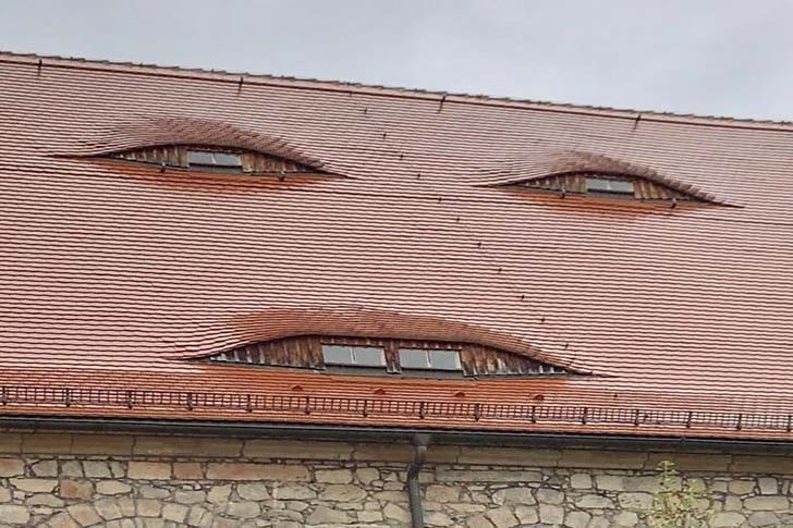 セリーヌ・ディオンの “もし壁が話せるなら…” という名曲は、誰もが知っています。ですがこの場合、”もし屋根が話せるなら…” とでも言うべきでしょうか。なぜなら、この屋根は確かに多くのことを語りそうだからです。今にも喋り出しそうな勢いでもあります。ですがかなり不気味ともいえる表情から、あまり嬉しいニュースとは言えません。この可愛い(?)屋根の顔に鼻がないのが少し残念です。