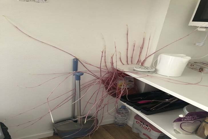 この奇妙な蜘蛛のような怪物の正体は、まともな人間であれば想像もつかないでしょう。はっきりしているのは、キッチンが乗っ取られるのは必至だということです。この怪物の正体は、長い間放置されていたジャガイモの袋だと知ったら、あなたはきっとショックを受けるはずです。料理に使われないことに抗議するために、自分たちの存在に気づいてもらうために、根っこをめちゃくちゃ長く伸ばしたのです。