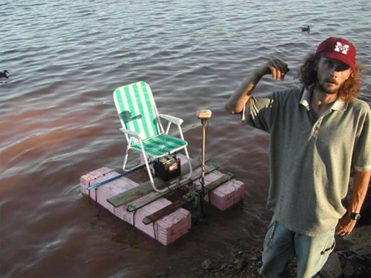 Ecco l’apice dell’innovazione umana: una sedia da spiaggia, ingegnosamente attaccata a due assi e dotata di un motore fuoribordo, che galleggia come un trono sull’acqua. Questo capolavoro di ingegneria marittima improvvisata è l’idea di un uomo che chiaramente si rifiuta di accettare i confini mondani dell’arredamento da spiaggia.