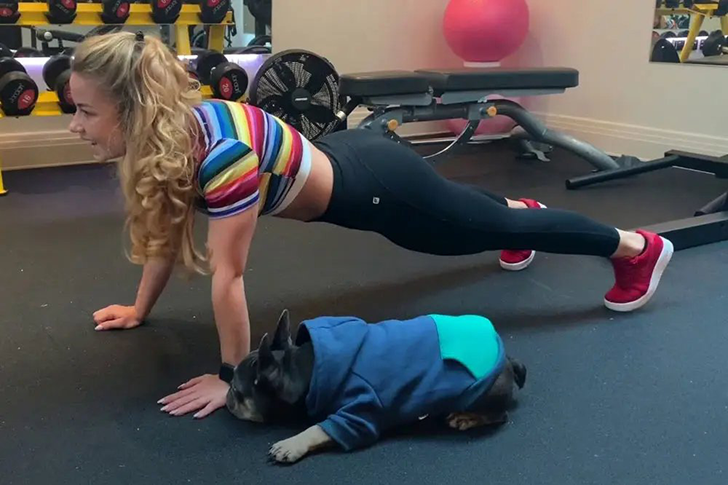 Die beliebte YouTuberin Naomi Jade zeigt hier ihr sportliches Duo-Training mit Bruno, ihrem verspielten französischen Bulldoggen. Das anspruchsvolle Workout umfasste Burpees, Sit-ups, Kniebeugen, Planks, Liegestütze, Ausfallschritte und Sprints – doch der eigentliche Star der Session war eindeutig der neun Monate junge Bruno.